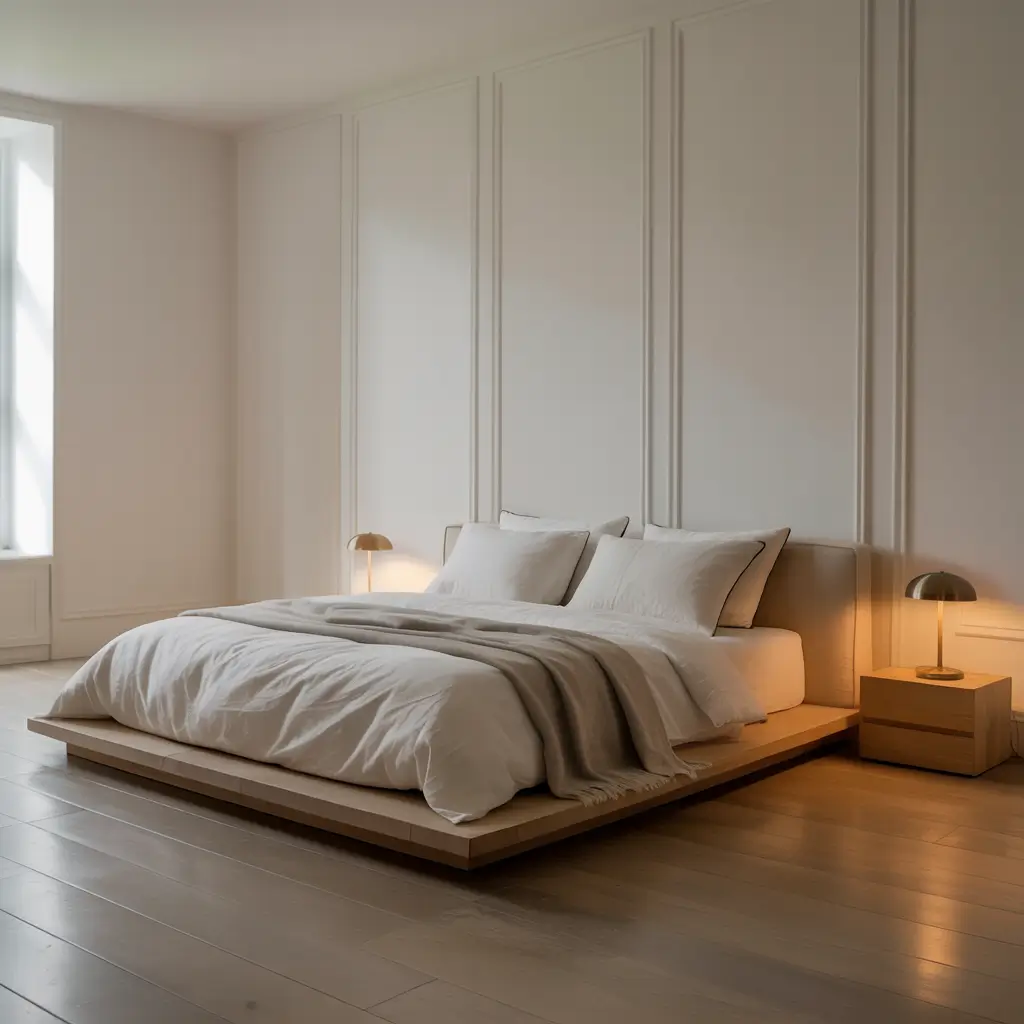 Wood adds warmth that modern minimalism sometimes lacks. The combination feels like a warm hug in bedroom form. Choose wood pieces with simple lines – think mid-century modern or Shaker style – that bridge both aesthetics.