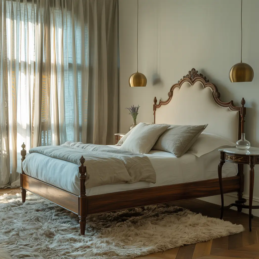 I learned this lesson the hard way when I tried cramming every traditional piece I loved into one room. The result? Chaos. Less really is more when you’re blending these styles. Choose maybe two or three traditional pieces that have simple, elegant lines – like a spindle bed or a classic chest of drawers.