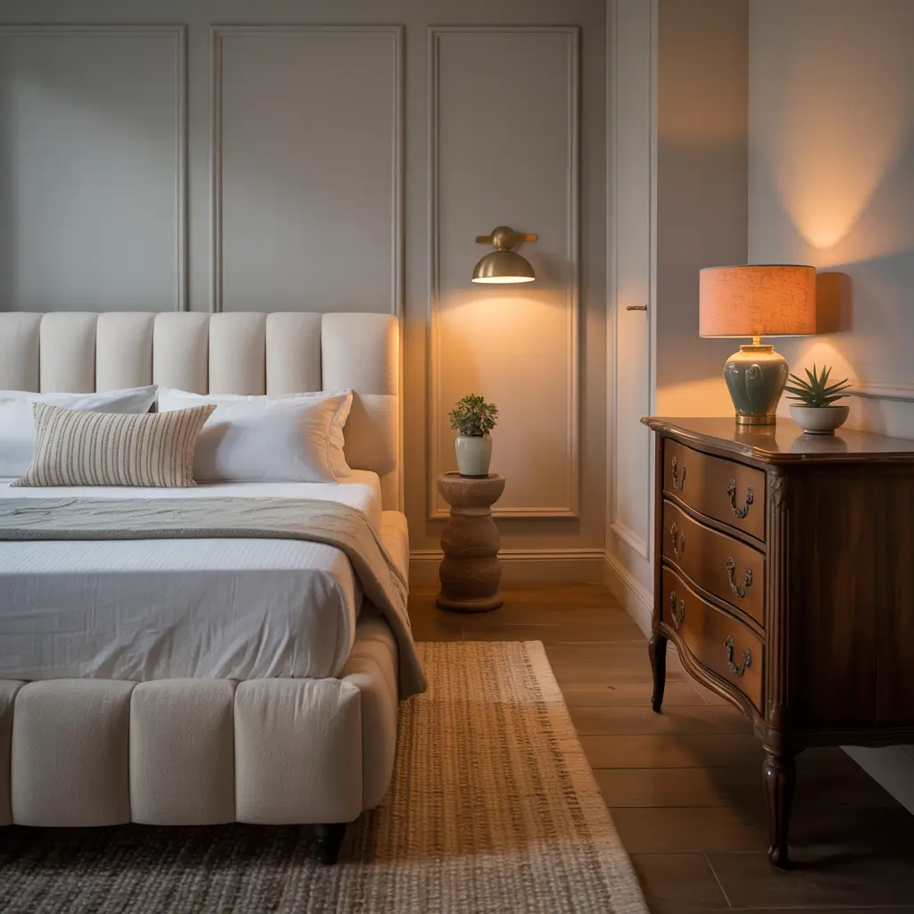 The magic happens when you layer traditional elements like a tufted headboard against clean, modern lines. Picture this: a classic button-tufted headboard in linen, paired with streamlined nightstands that have zero ornamentation. The contrast creates this sophisticated tension that just works.