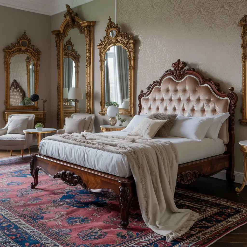 Got a tiny bedroom? One ornate piece is plenty. Maybe it’s a Victorian vanity or an elaborate mirror. Surround it with minimalist furniture in neutral tones to prevent the space from feeling cluttered. The contrast actually makes your room feel larger – weird how that works, right?