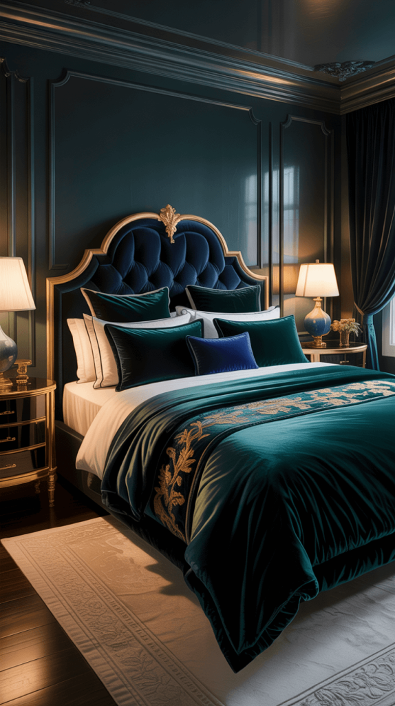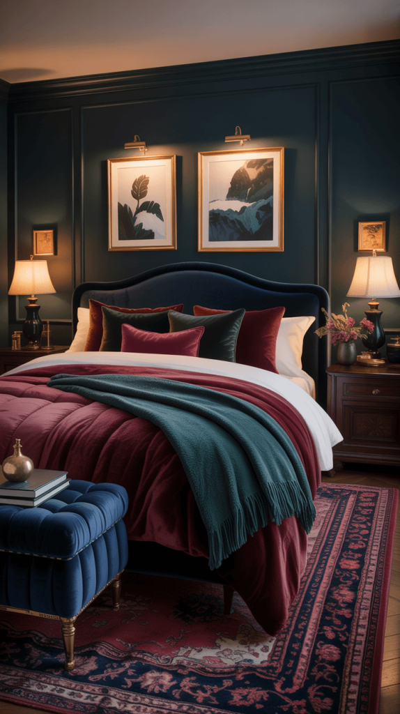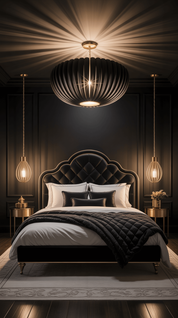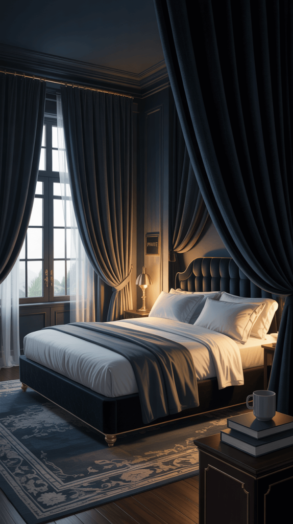 Okay, so you’ve got your dark walls. But if you just plop a bed in the middle of the room, it might feel a bit flat, right? Like a stage before the actors arrive.