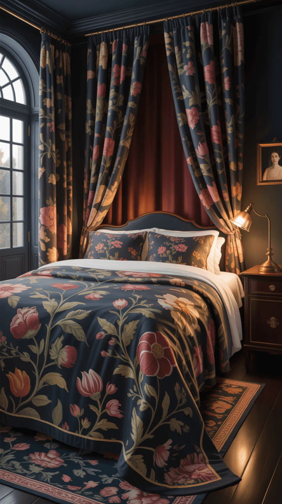 8. Use Dark Floral Prints for Bedding or Curtains