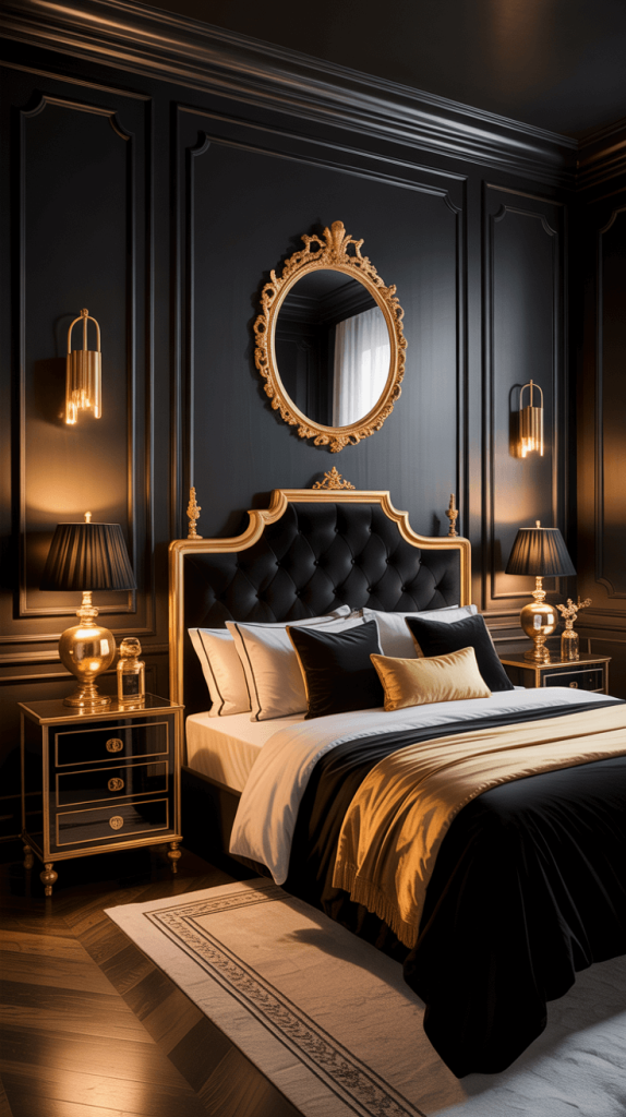 Black and gold together are timeless, luxurious, and inherently dramatic. The gold provides warm, reflective light, while the black adds depth and grounding.