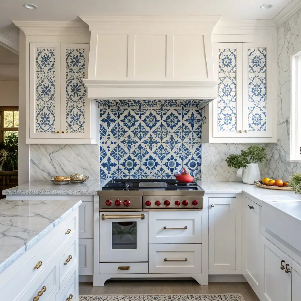 Okay, can we talk about how white cabinets and Moroccan tiles are basically the power couple of kitchen design? This combination works every single time – it’s practically foolproof. The crisp, clean backdrop of white cabinetry lets those intricate tile patterns absolutely shine.