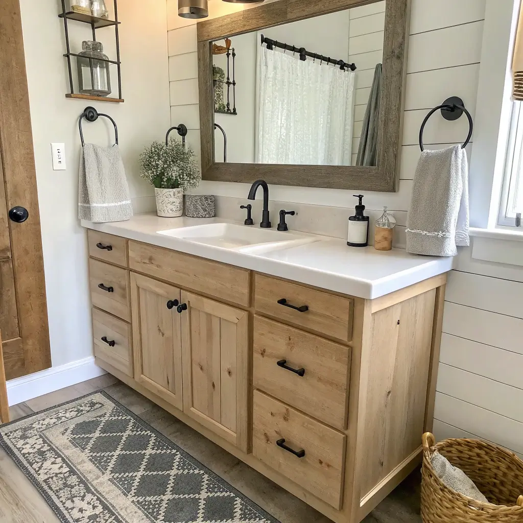 The secret to nailing farmhouse style without looking like you’re trying too hard? Mix in some unexpected elements. Maybe add a modern mirror or contemporary lighting. It keeps things fresh and prevents that “themed restaurant bathroom” vibe.