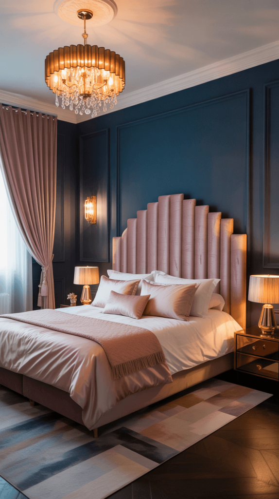 We touched on this with the luxurious bedroom, but it deserves its own spot. The navy-pink-gold trifecta is arguably the most elegant combination on this list. It’s timeless, rich, and just feels expensive.
