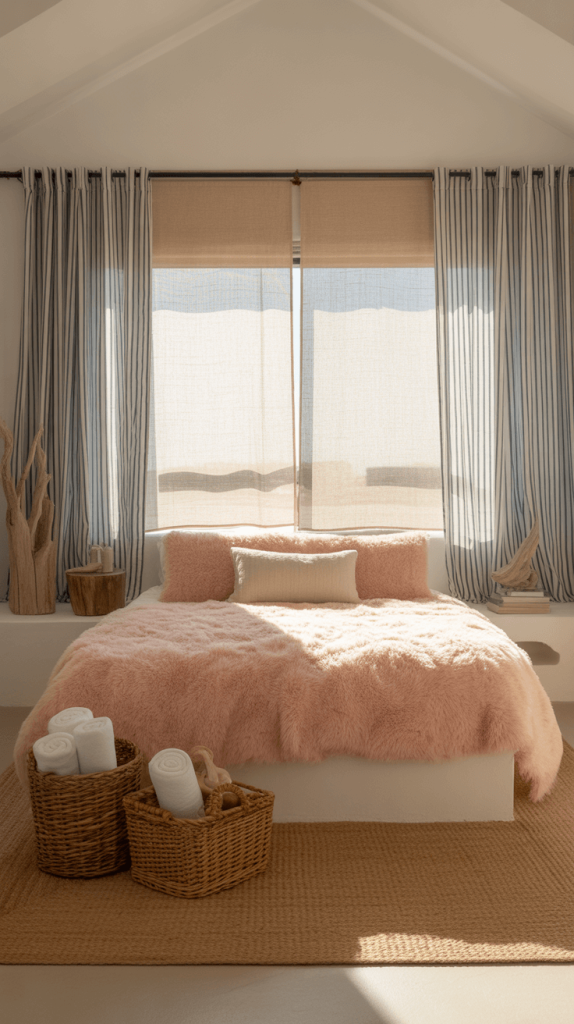 Add natural textures: jute rugs, woven seagrass baskets, and lots of light wood. Decor should be simple—a piece of driftwood, a glass bottle, a shell collection. It’s serene, calming, and makes you feel like you’re on vacation every day.
