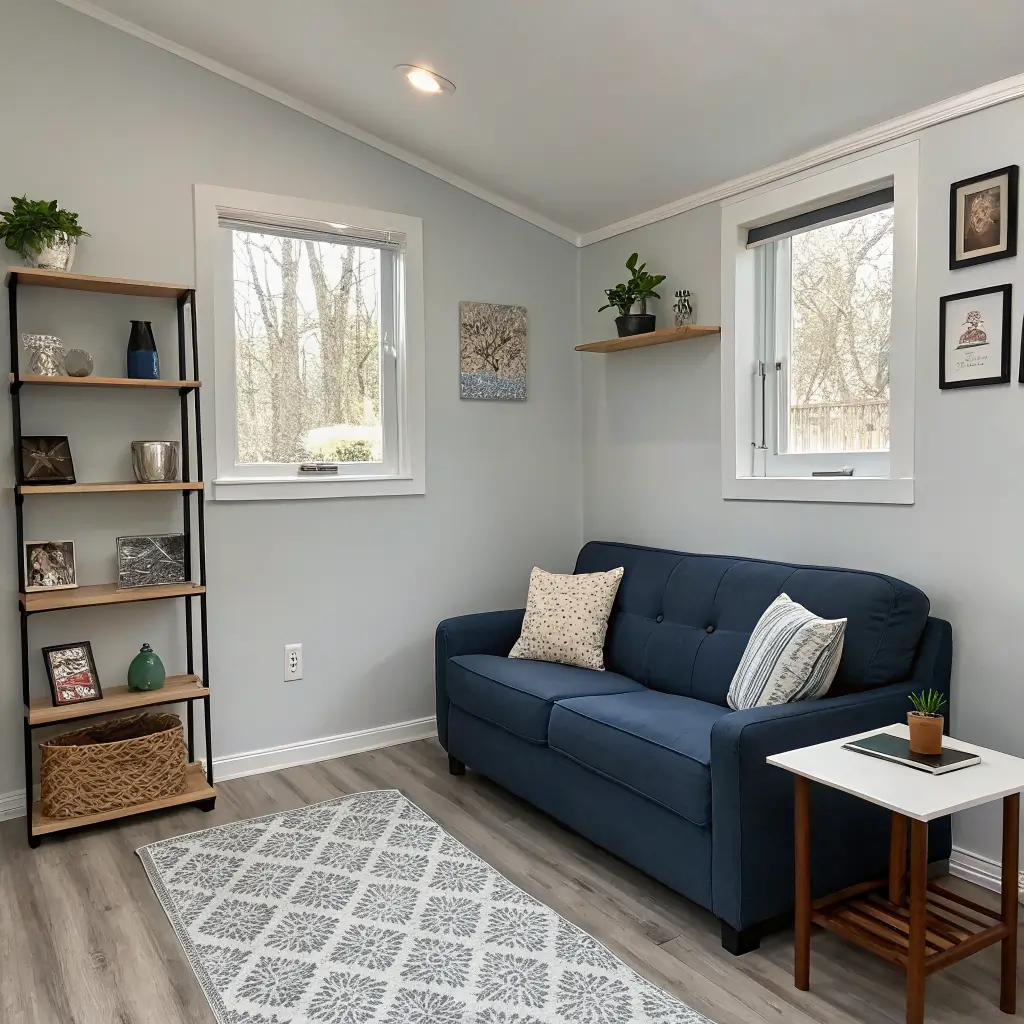 - Multi-functional furniture (storage ottoman, nesting tables)