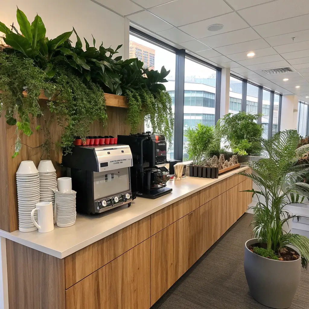 Plants and coffee bars go together like, well, coffee and Monday mornings. Adding greenery creates a calming atmosphere and improves air quality. Plus, caring for office plants gives people something to bond over besides complaining about meetings.