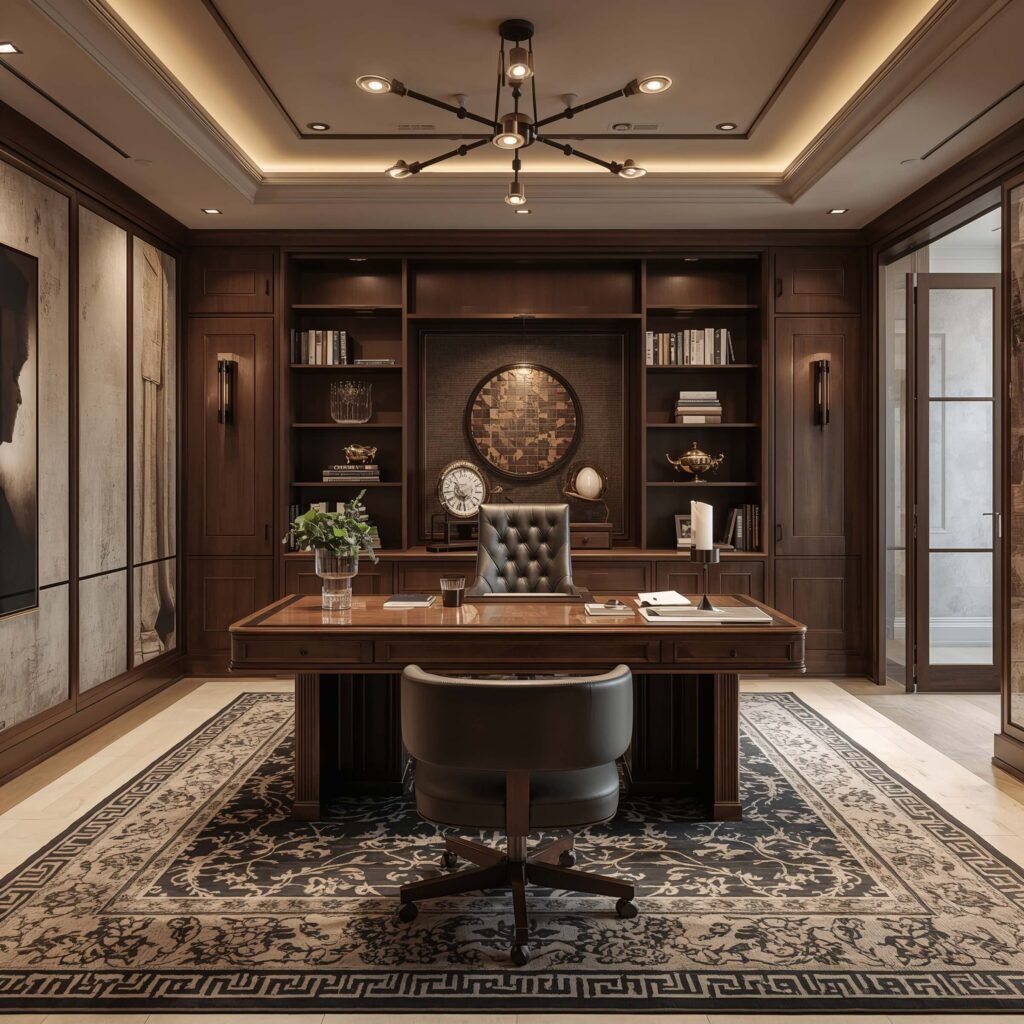 The executive office vibe comes from scale and proportion. Oversized furniture pieces, high ceilings (or the illusion of them), and strategic zoning create that CEO atmosphere. My home office spans what used to be two small bedrooms—knocking down that wall transformed everything.
