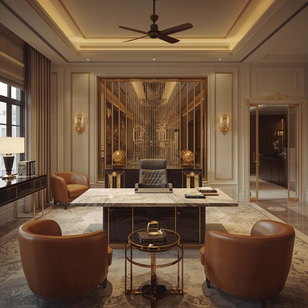 Nothing says “I’ve made it” quite like marble and glass surfaces reflecting natural light across your workspace. This combination creates an atmosphere that’s both luxurious and energizing—perfect for those days when you need extra motivation.