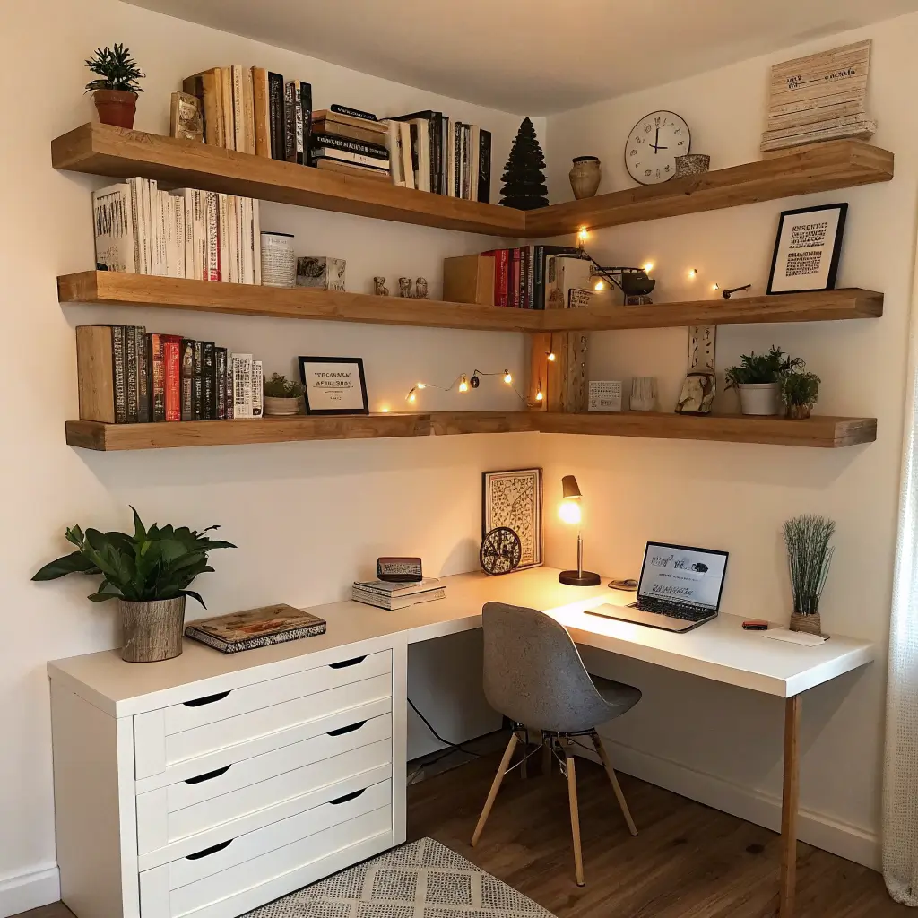 Remember those weird corner spaces that just collect dust and maybe a sad fake plant? L-shaped corner shelves transform these dead zones into storage goldmines. I installed one in my office corner last year, and suddenly I had room for all my design books AND my coffee mug collection.