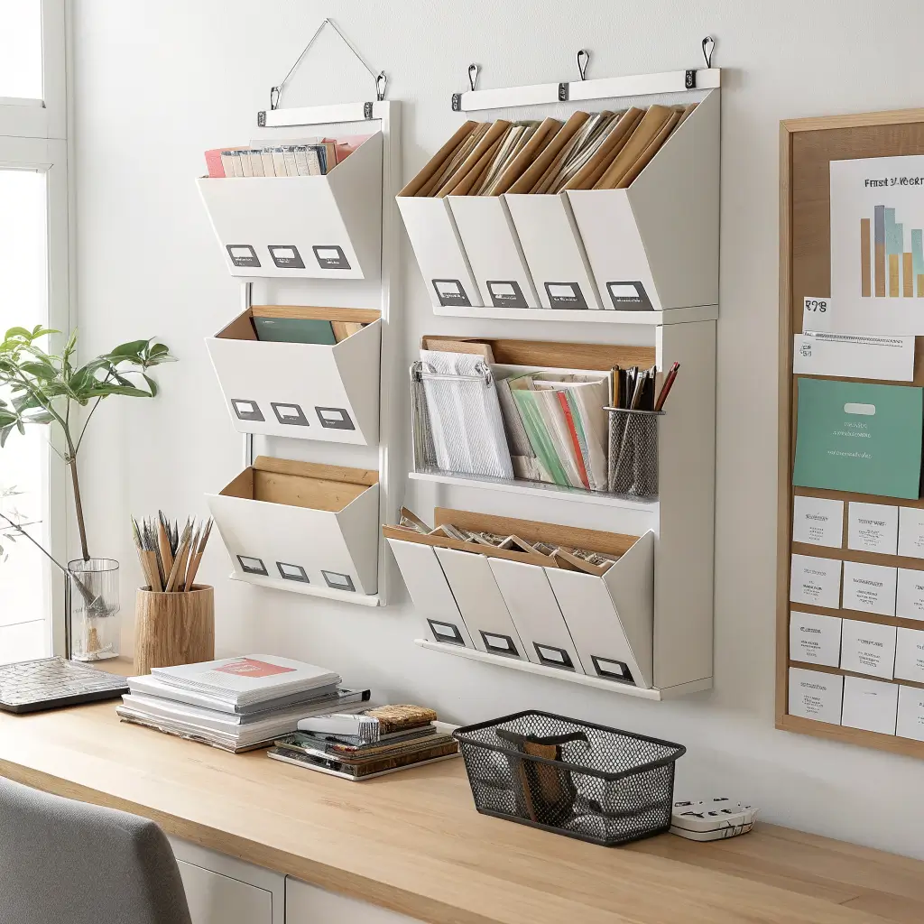 Let’s face it – paper isn’t dead, despite what tech companies want us to believe. Wall-mounted file organizers keep your documents visible and accessible without eating up desk space. I’ve got three mounted next to my desk: one for active projects, one for bills (ugh), and one for ideas I’m not ready to tackle yet.