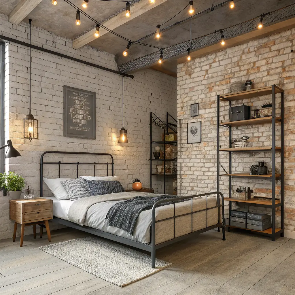 Exposed elements are key here. Think metal bed frames, Edison bulb lighting, and reclaimed wood furniture. The color palette naturally leans toward blacks, grays, and browns, which honestly hides dirt pretty well (practical mom tip right there).