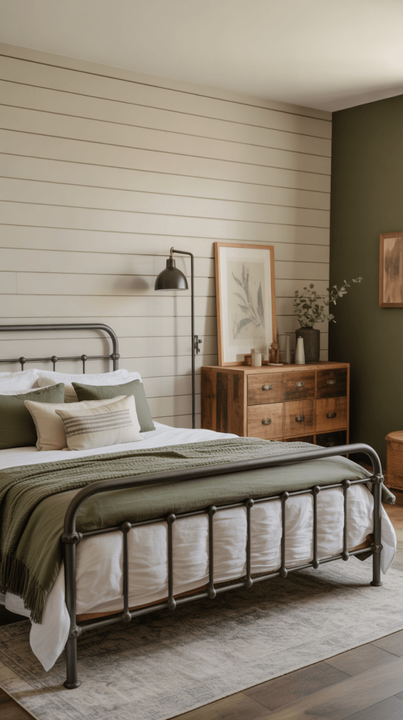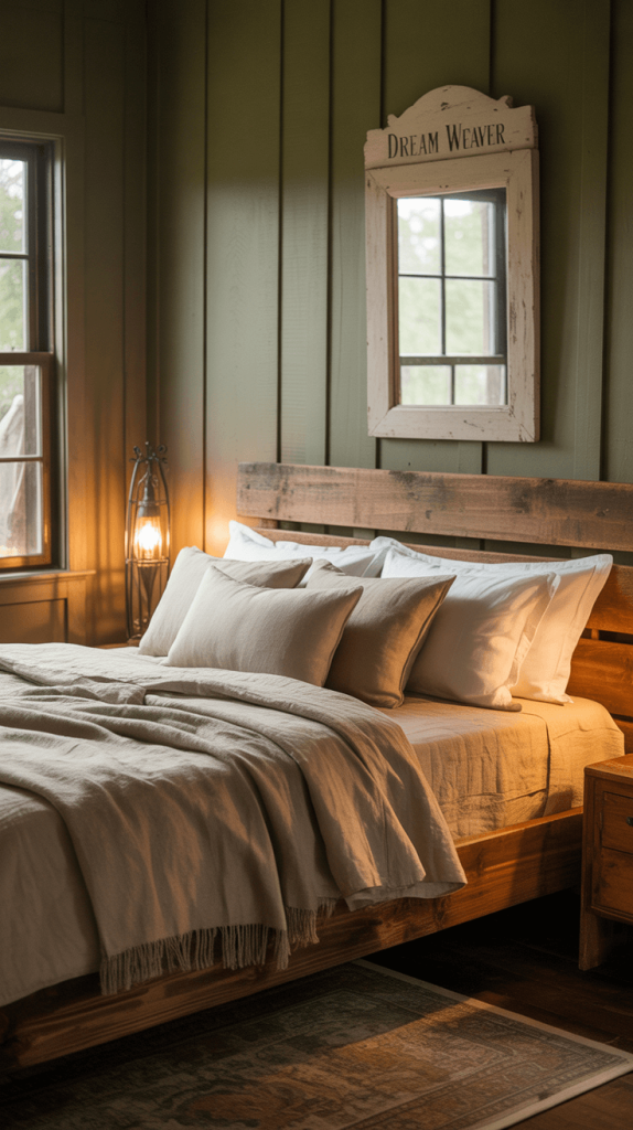 8. Olive Green and Beige Rustic Bedroom Decor
