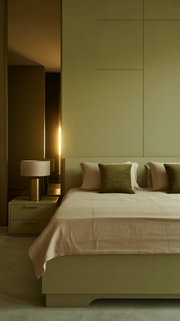 7. Luxury Olive Green and Beige Bedroom Inspiration