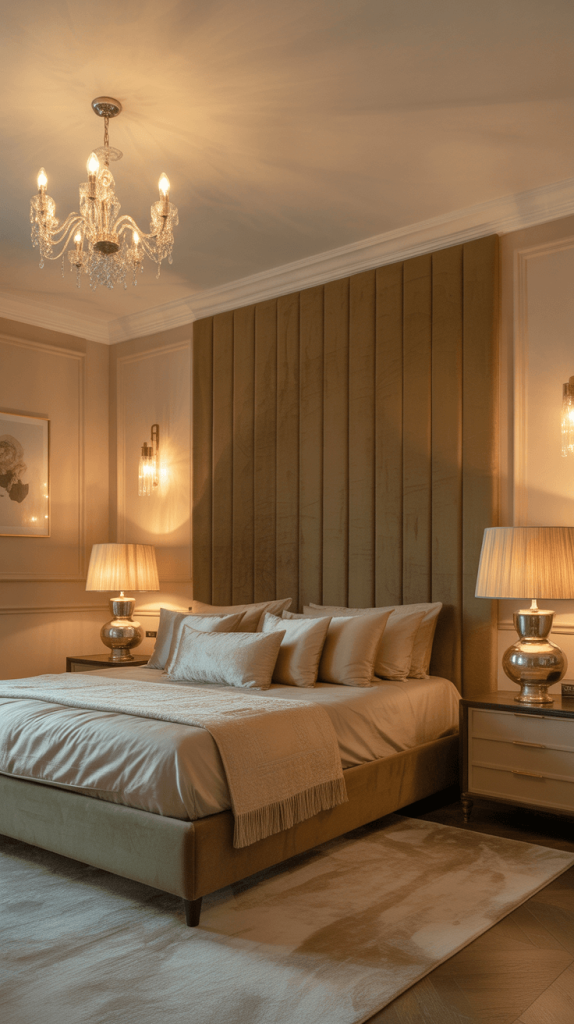 - Refined Lighting: Swap out basic builder-grade lights for something with presence. A crystal table lamp on your nightstand, a small chandelier overhead, or elegant wall sconces on either side of the bed provide a warm, flattering glow. The right lighting can single-handedly elevate a room from nice to knockout.