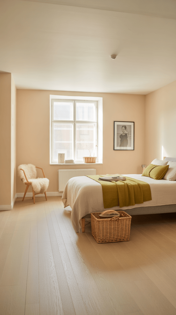 - The Foundation: White and Wood: Scandinavian interiors often start with a bright white or very light beige base. This maximizes light, which is crucial in Nordic countries with long winters. Then, incorporate light wood tones—think pale oak or ash—in your flooring, bed frame, and side tables. The olive green comes in as a soothing accent color.
