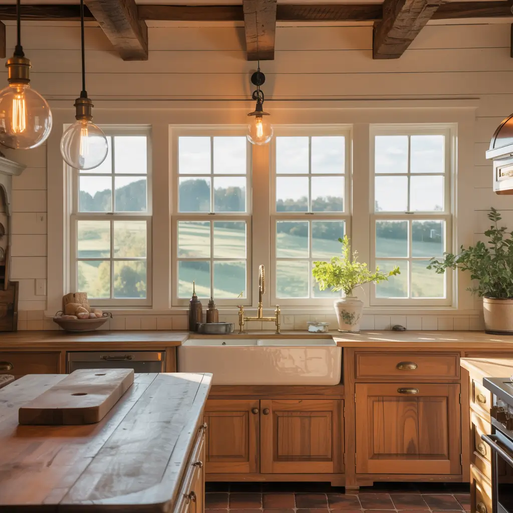 Start with your foundation: exposed wooden beams (real or faux, I won’t judge), shiplap walls, and that essential farmhouse sink. You know the one – deep, white, and practically begging for a window view above it. These elements create that instant “come on in and stay awhile” vibe.