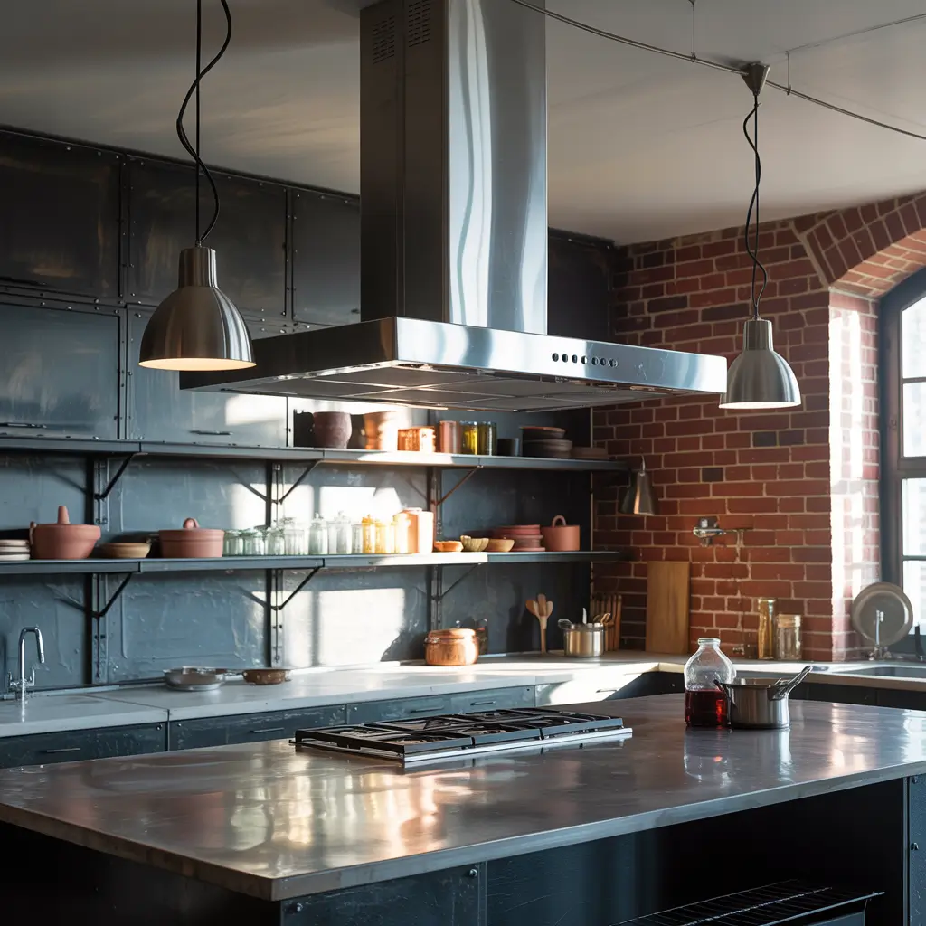 The trick with industrial design? Balance. Too much metal and concrete makes your kitchen feel cold. Add warmth through: