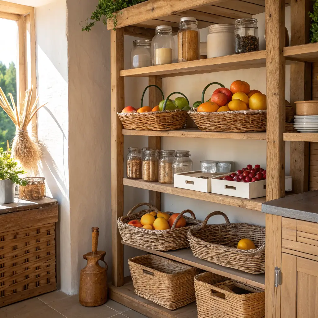 Kitchen Shelves with Decorative Baskets