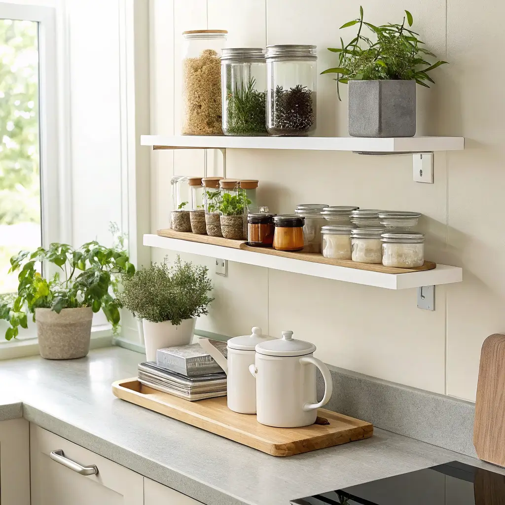 Compact Open Shelves for Small Kitchens