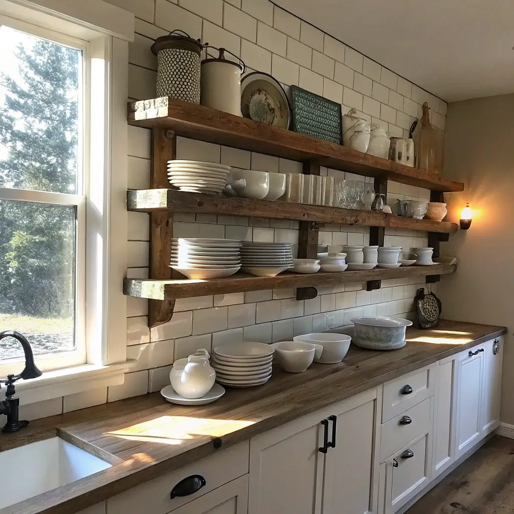 Farmhouse Style Open Shelves