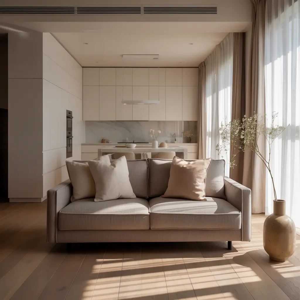 Sometimes you want sophistication without the drama. Neutral open concepts deliver timeless elegance that won’t look dated in five years. Layers of beige, cream, taupe, and gray create depth without overwhelming the senses.