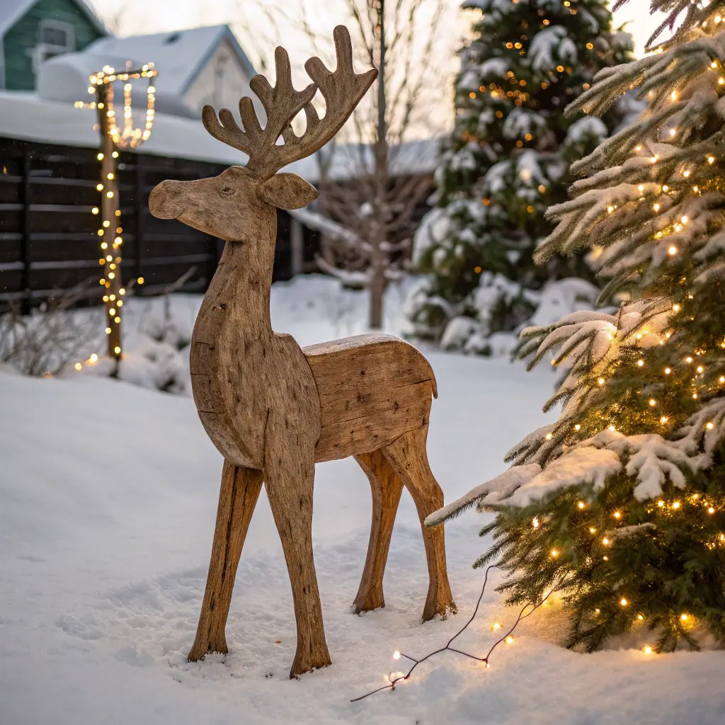 Building a rustic reindeer scene starts with the stars of the show: wooden reindeer in various sizes. You can buy these pre-made or, if you’re handy with a saw, create them from reclaimed wood. Position them in a natural grouping, like a family, with the largest in back and smaller ones in front.