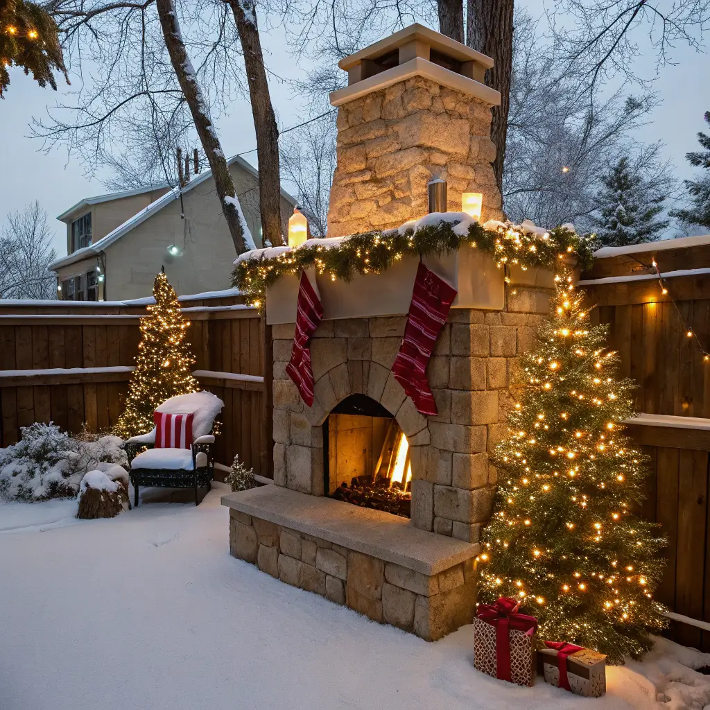 Outdoor Fireplace Holiday Decor