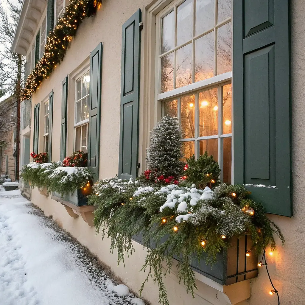 Window boxes aren’t just for summer flowers, and IMO, they actually shine brightest during the holidays. Transforming window boxes into miniature winter scenes adds charm at eye level where people actually notice details.