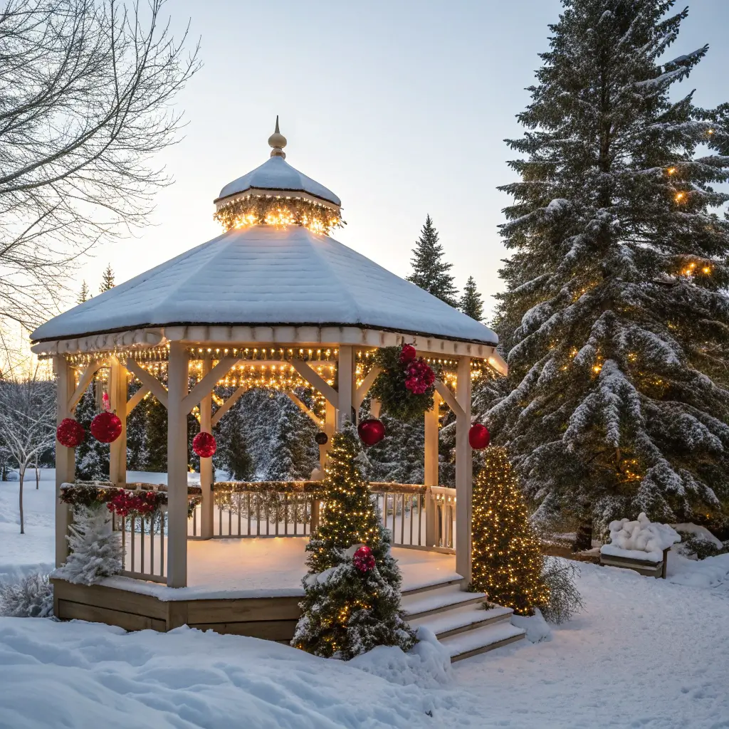 Got a gazebo, pergola, or arbor? Congrats—you’ve got a built-in Christmas decoration frame just waiting to be transformed. These structures provide so many attachment points that decorating them becomes almost effortless.
