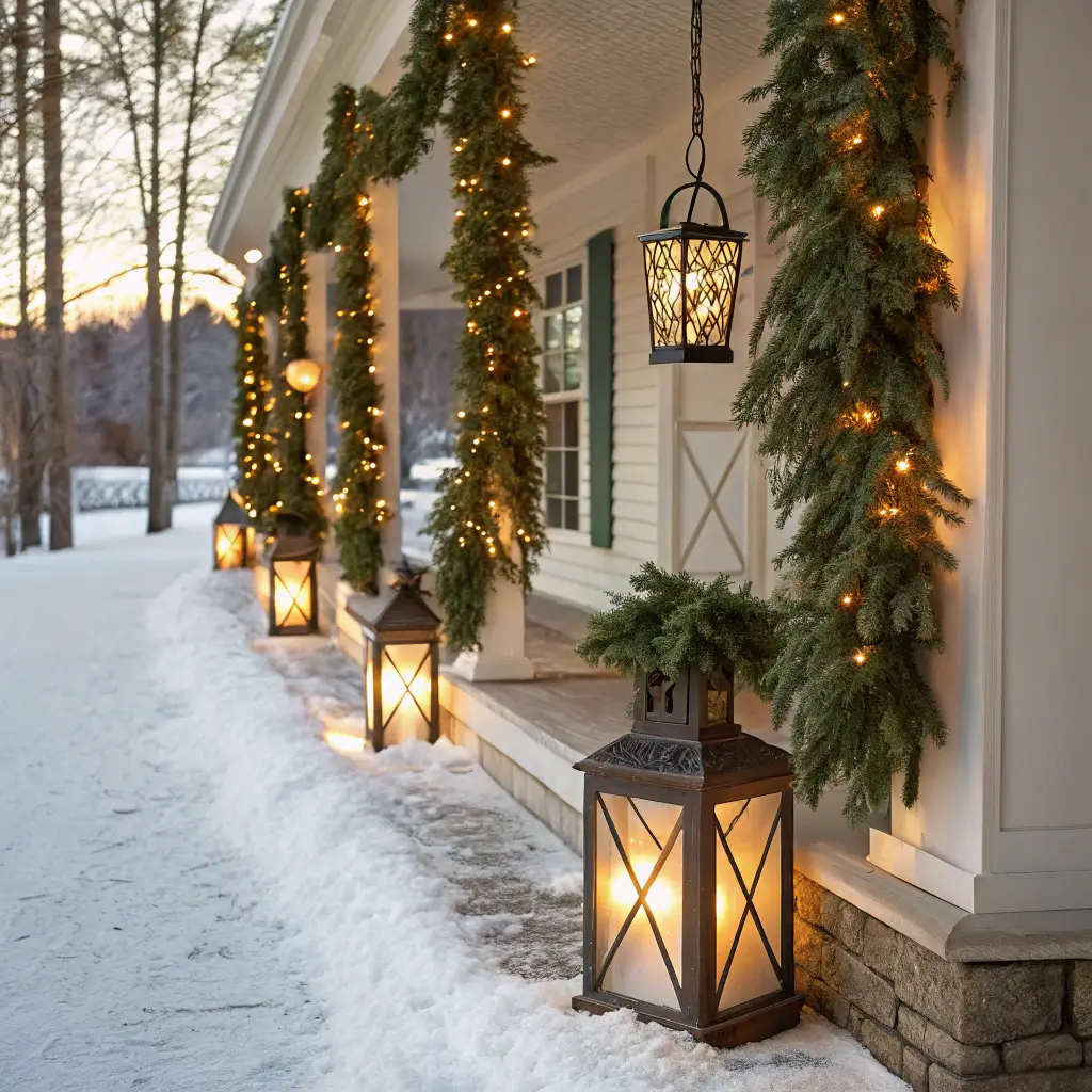 Transform your porch into a cozy Christmas retreat by starting with the basics: garland. But not just any garland—I’m talking thick, lush garland that looks like you dragged it straight from a forest. Wrap it around columns, drape it along railings, and frame your door like you mean it.