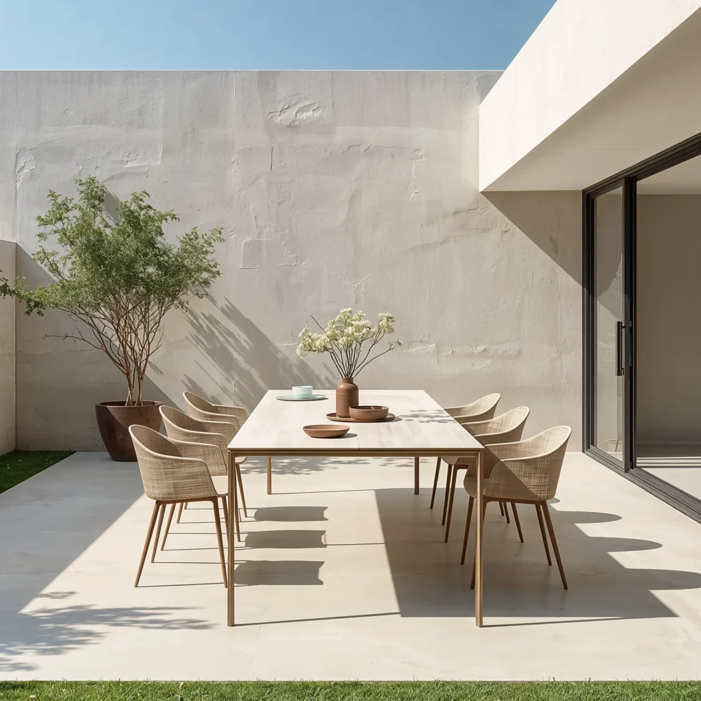 Now, if rustic isn’t your jam, let’s talk modern minimalist. This style screams sophistication without trying too hard. I remember visiting a friend’s place where they had this sleek concrete dining table â€“ I was skeptical at first, but wow, the clean lines completely transformed their patio.