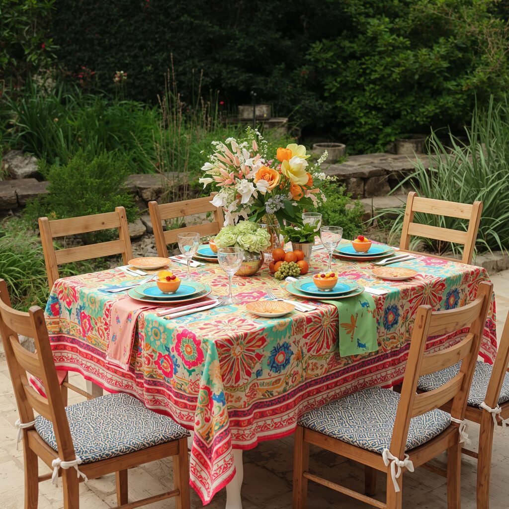 Pick a color palette and commit to it. I chose coral, turquoise, and yellow for my summer setup, and everything from napkins to planters followed this scheme. The result? Instagram-worthy dining that actually makes people smile.
