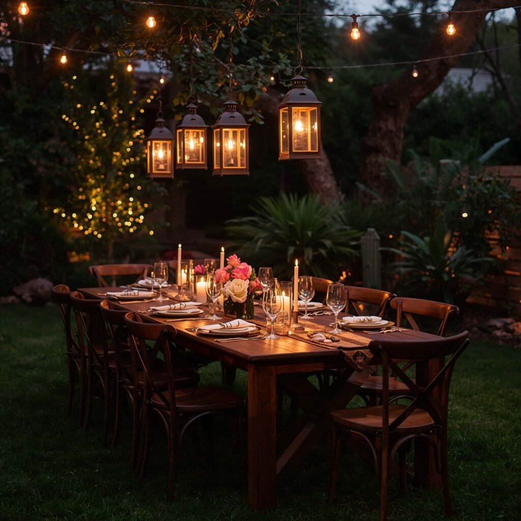 I’ve experimented with everything from Moroccan metal lanterns to paper lanterns to mason jar lights. Each style creates a completely different mood. Metal lanterns cast these amazing shadow patterns, while paper lanterns provide soft, diffused light perfect for intimate dinners.
