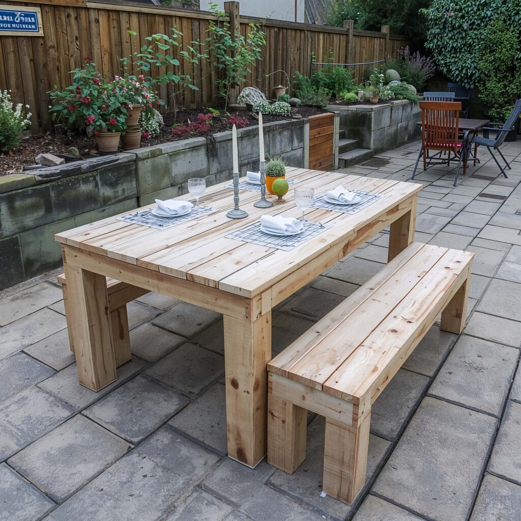 Rustic Wooden Outdoor Dining Setup