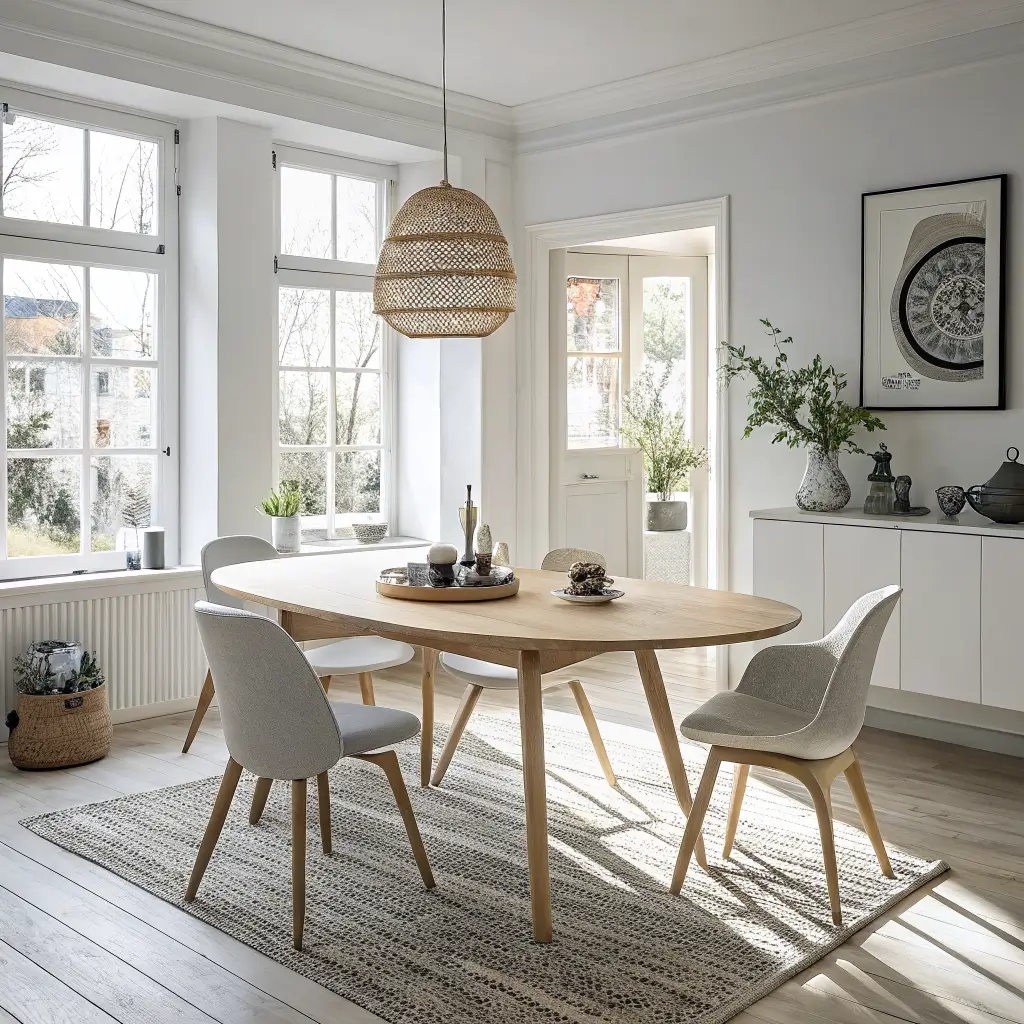 I recently helped my neighbor style her dining room this way, and the transformation was insane. She went with a pale birch oval table, paired it with some wishbone chairs, and suddenly her cramped dining area felt twice as big. The oval shape naturally softens all those clean lines that Scandinavian design loves so much.
