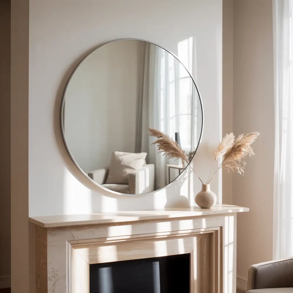 The beauty of a minimalist mirror lies in its ability to make your room feel twice as big. I learned this trick the hard way when I moved into a tiny apartment with a fireplace that dominated the entire wall. One massive round mirror later, and suddenly my cramped living room felt like it had actual breathing space.
