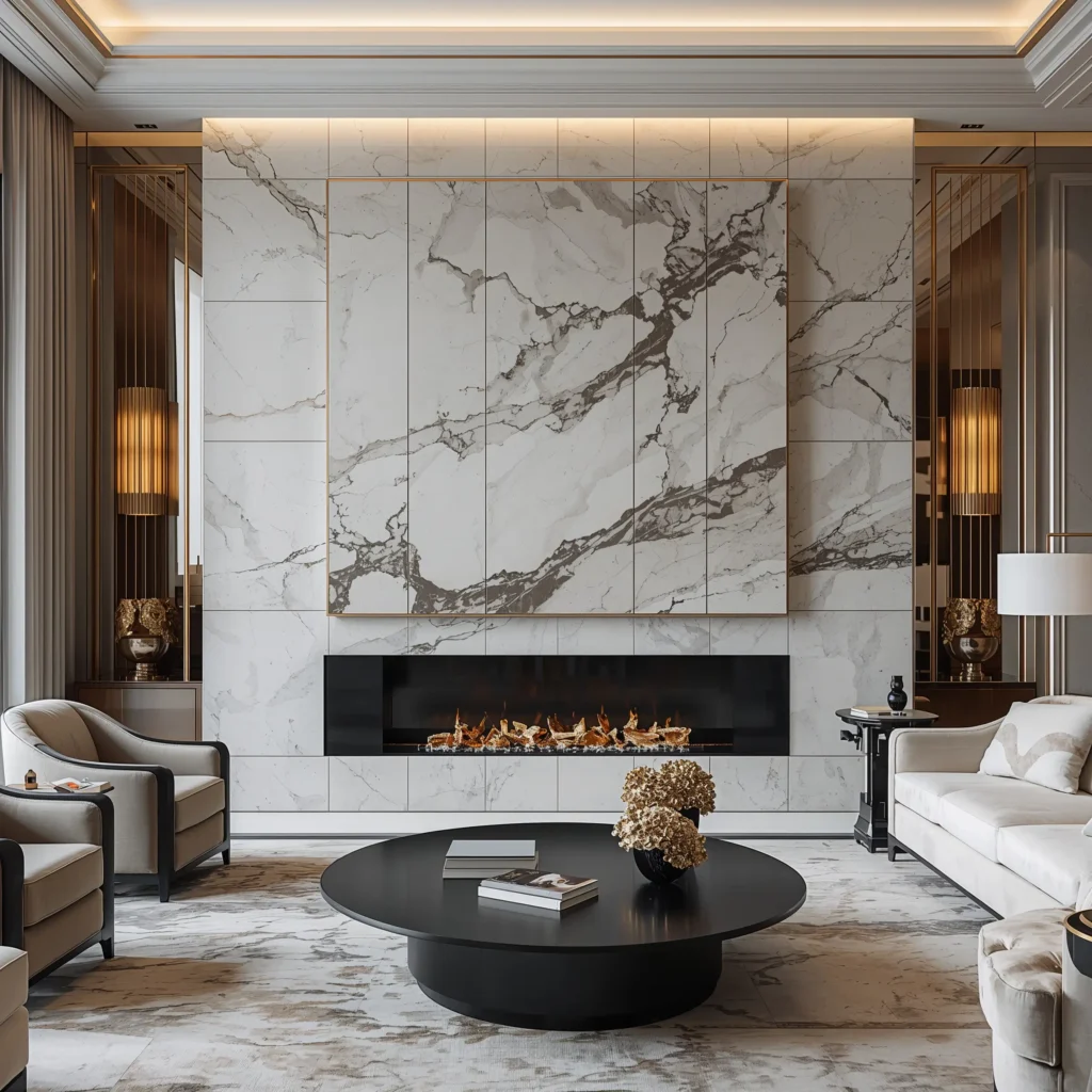 You don’t need actual marble slabs (though if that’s in your budget, go for it). Modern printing techniques can create stunning marble-effect prints that look incredibly realistic from a normal viewing distance.