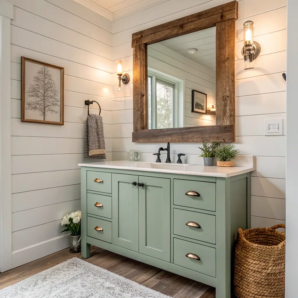Remember when everyone thought green in bathrooms was weird? Well, sage green vanities are proving those people wrong. This soft, muted green gives you all the farmhouse feels without looking like you raided Joanna Gaines’ warehouse.