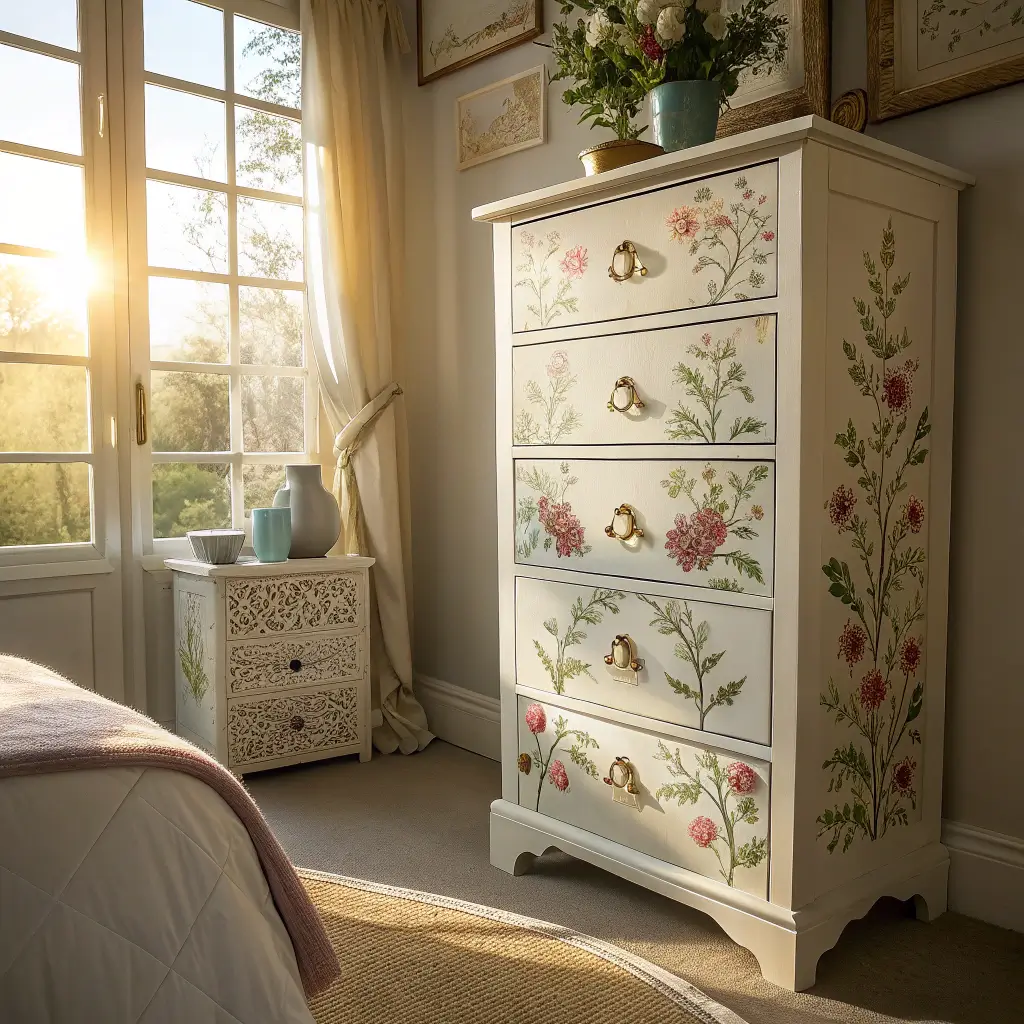 Okay, I’ll admit it – hand-painting florals scared me for years. But after taking a weekend workshop (and consuming maybe too much wine during it), I discovered it’s not as intimidating as it looks. Small floral details on drawer fronts or corners add personality without requiring Michelangelo-level skills.