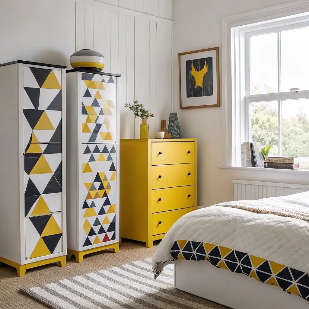 Geometric patterns transform basic furniture into modern art pieces. I painted chevron stripes on my dresser drawers, and now it looks like something from a high-end furniture store. The key lies in precise measurement and patience – lots of patience.