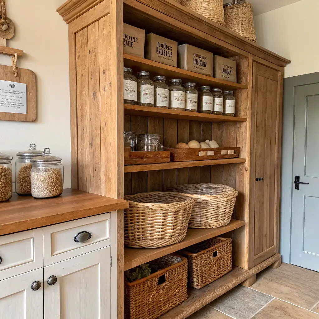 Invest in one or two statement pieces – maybe a beautiful wooden ladder for high shelves or an antique basket for produce. These focal points draw the eye and elevate the entire space.