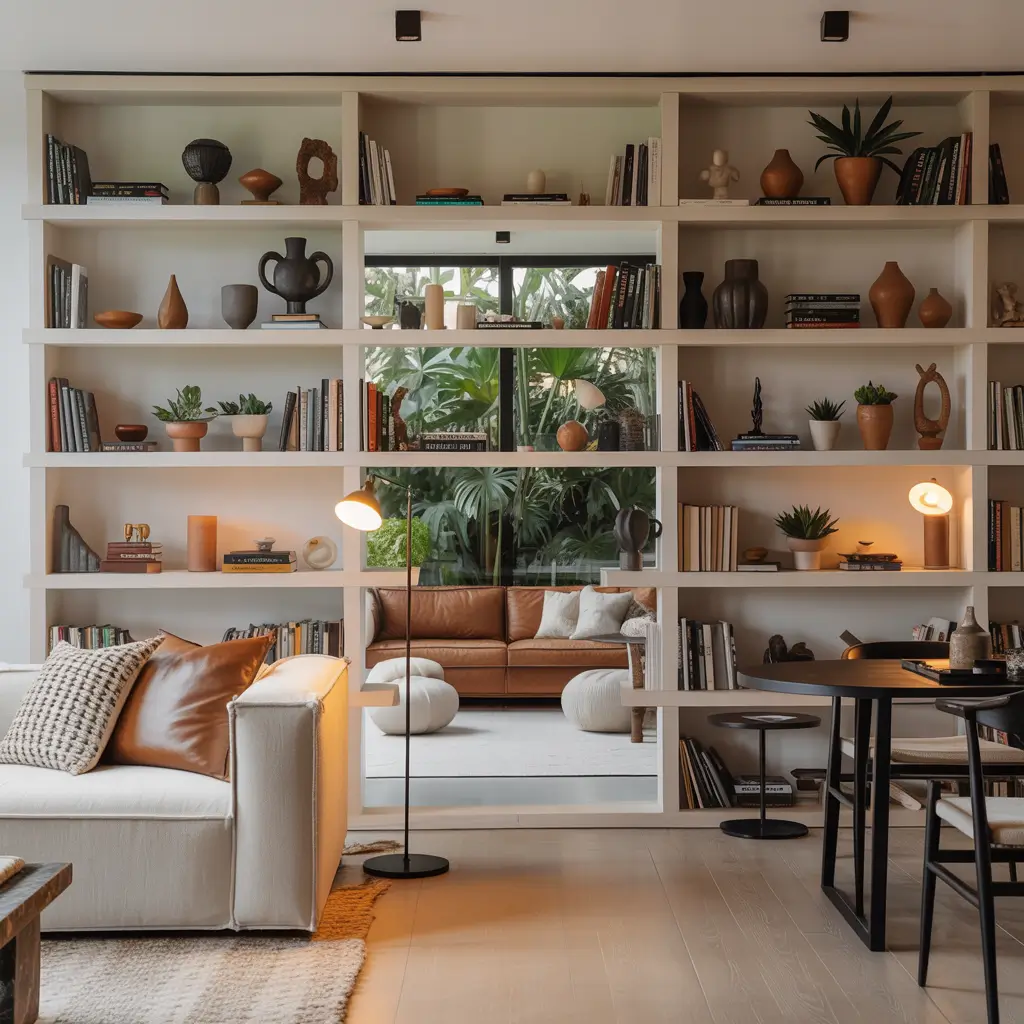 3. Bookshelf Room Divider Stylish Open Space Concept