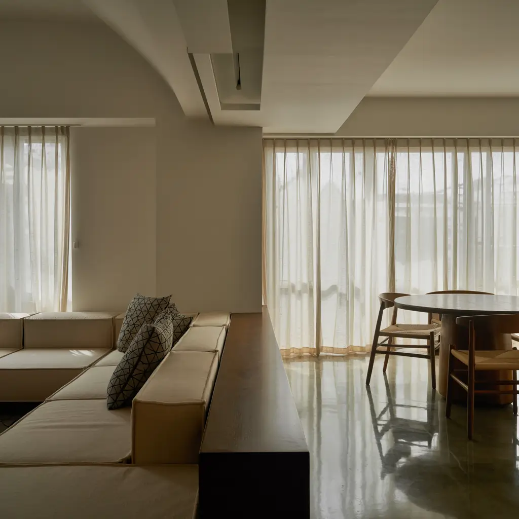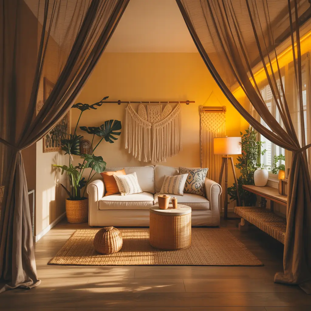 6. Curtain Divider Cozy Living Room Zoning Idea