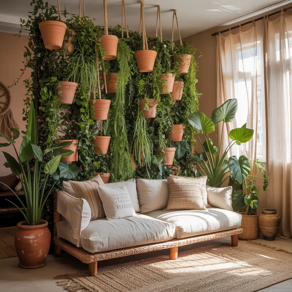 You can create a plant wall with tall floor plants like fiddle leaf figs or bird of paradise, or build an actual living wall with smaller plants mounted on a frame. Either way, you’re bringing life into your space in the most literal sense.
