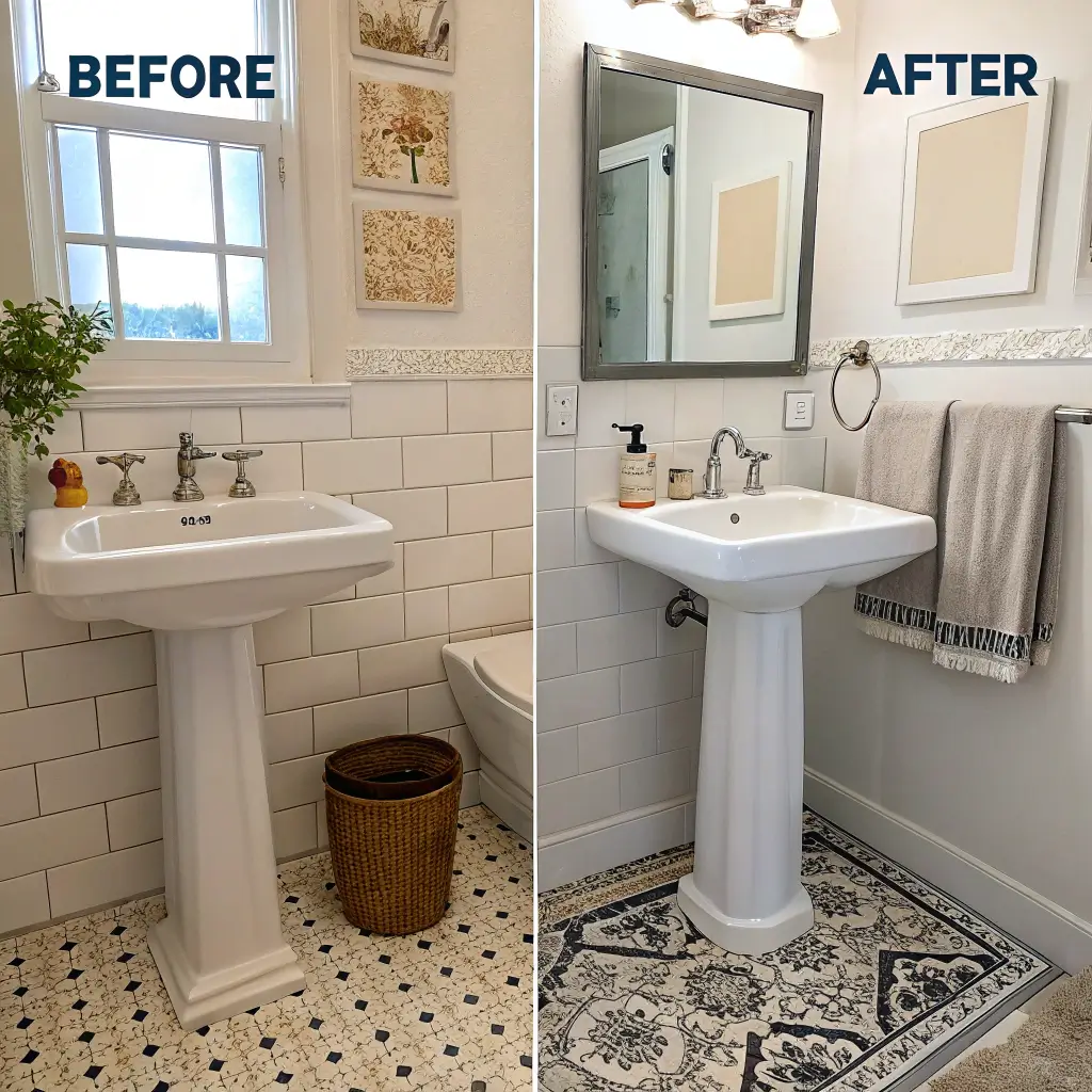 Start with one change and build from there. Maybe begin with a simple white pedestal sink and add personality through accessories. Or go bold with a vintage find and let it guide your entire design. There’s no wrong answer – just what works for your space and life.
