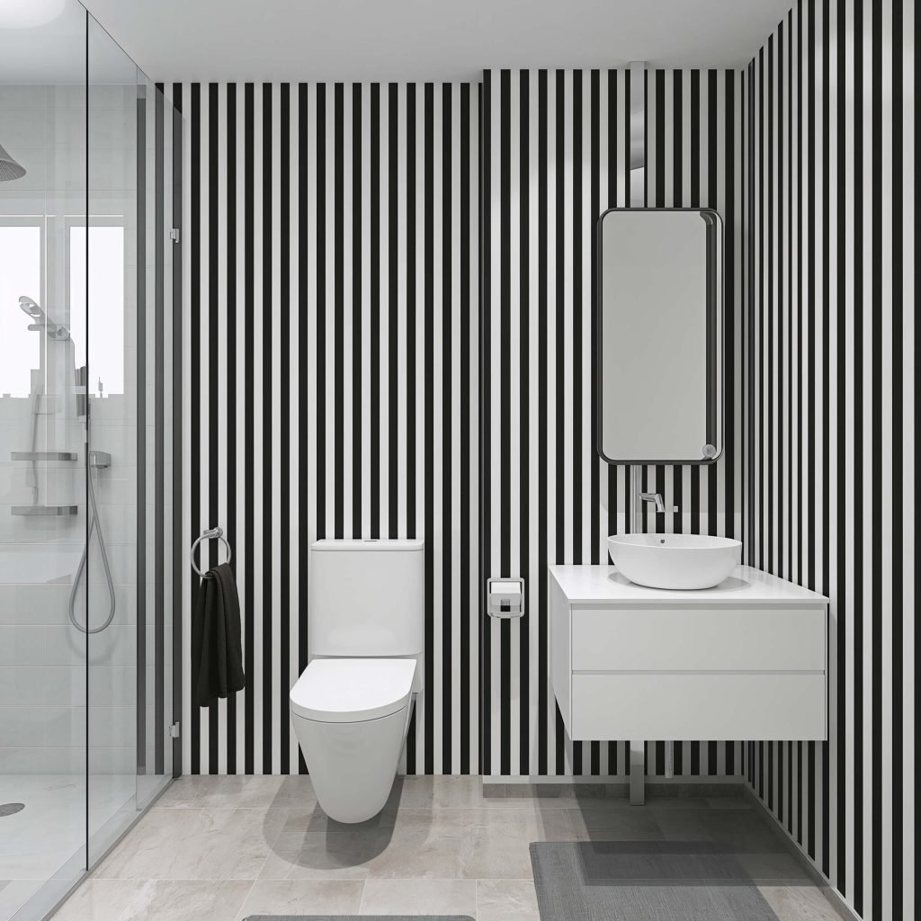 But here’s the thing – stripe width matters more than you’d think. Thin pinstripes feel preppy and classic. Wide stripes scream modern and bold. I went with 3-inch stripes in my main bathroom, and it hits that sweet spot between interesting and liveable.