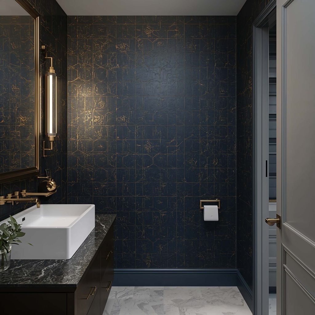 The key to pulling off dark wallpaper? Killer lighting. You need good overhead lighting plus vanity lights to prevent cave vibes. But when done right, a dark blue bathroom feels sophisticated and intentional, not gloomy.